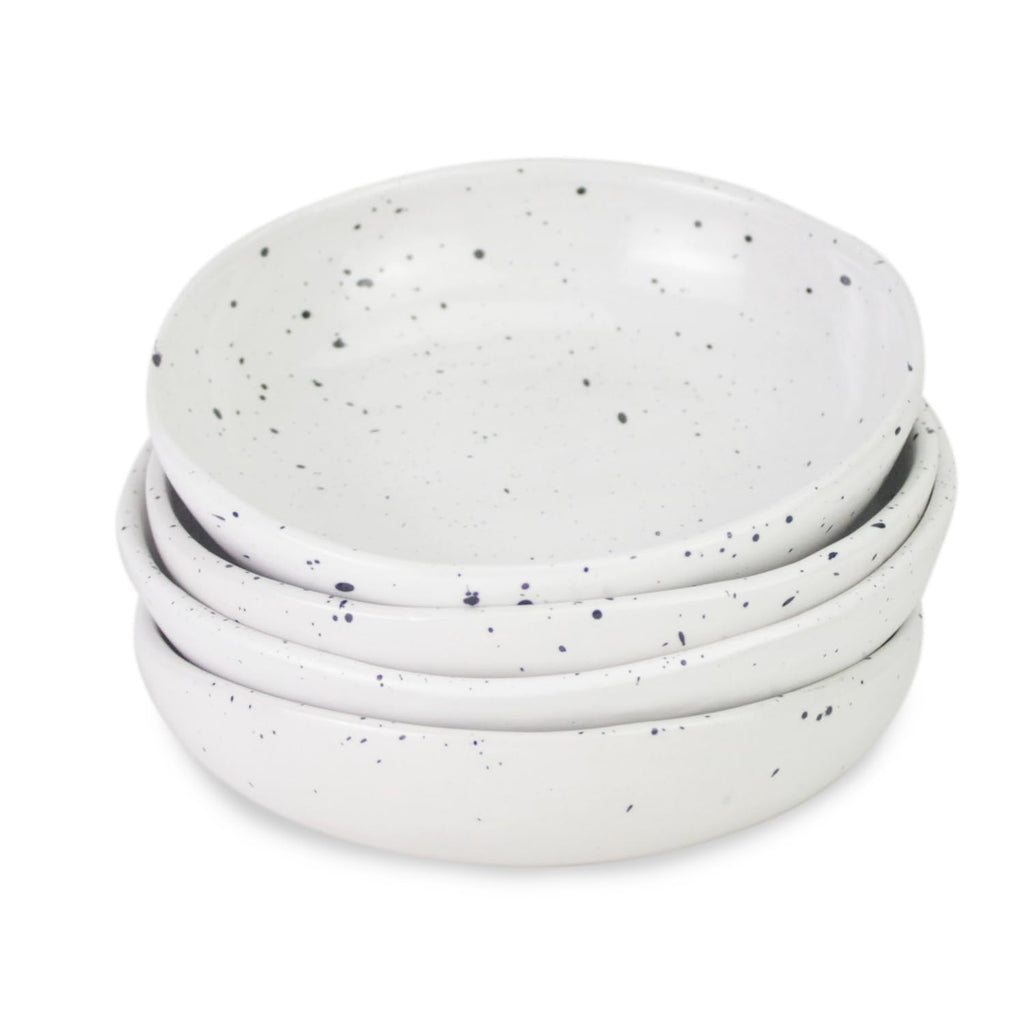 roro 5 Inch Handmade Ceramic Small Bowl, Glossy White Speckled
