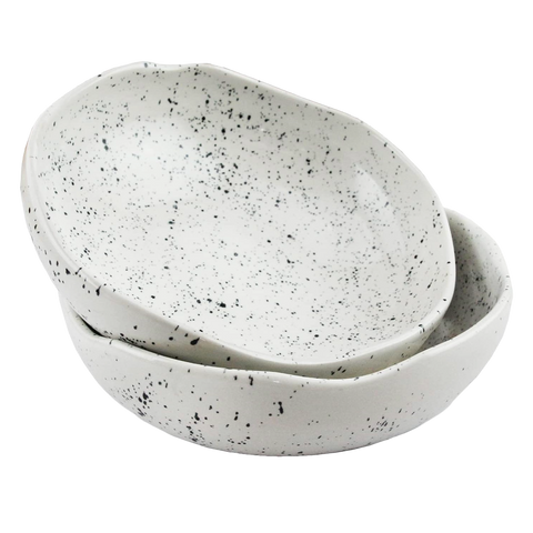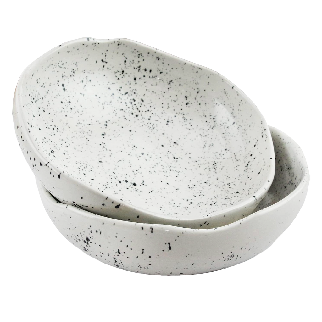 • 🍝 Elevate Your Table with Sophisticated Style: The striking speckled design in Lunar White adds a touch of elegance, while the hand-finished, slightly wavy edge on each bowl. They are smooth, glossy surface that feels great to use and won't scratch. (Approximately 8" x 8" x 2.25")